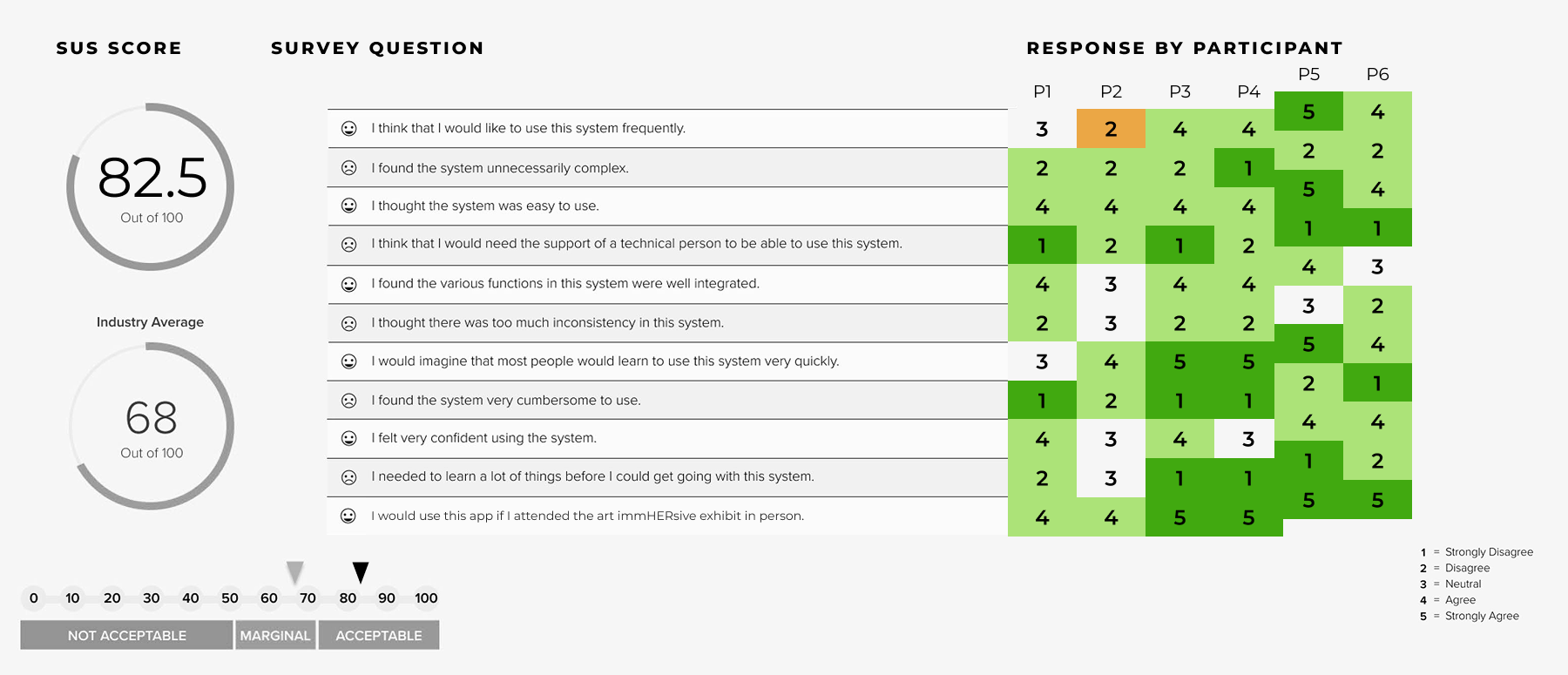 Post-testing, I administered a System Usability Scale (SUS) questionnaire to quantify the experience.